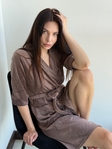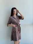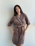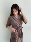 М’який матеріал ніжно огортає тіло, даруючи відчуття затишку. Зручна посадка та крій «на запах» із внутрішнім поясом підкреслюють жіночність і забезпечують комфорт у носінні.