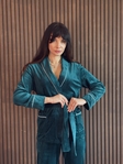 Велюровий домашній комплект на запах із штанами – м’який і приємний до тіла, ідеальний для затишного відпочинку вдома.