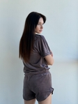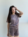 М’який велюр приємний до тіла, дарує відчуття затишку та ніжності. Шорти на м’якій резинці забезпечують зручну посадку без тиску, а футболка вільного крою додає легкості та свободи рухів.