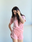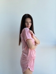 М’який велюр приємний до тіла, дарує відчуття затишку та ніжності. Шорти на м’якій резинці забезпечують зручну посадку без тиску, а футболка вільного крою додає легкості та свободи рухів.