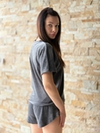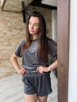 М’який велюр приємний до тіла, дарує відчуття затишку та ніжності. Шорти на м’якій резинці забезпечують зручну посадку без тиску, а футболка вільного крою додає легкості та свободи рухів.