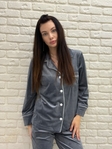 Піжама з велюру на бавовняній основі – поєднання стилю та комфорту для вашого відпочинку. Комплект складається з сорочки на ґудзиках та штанів на м’якій резинці з кишенями. Зручна посадка забезпечує свободу рухів, а приємний до тіла велюр дарує відчуття затишку.