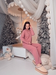 Жіноча флісова піжама на ґудзиках — це поєднання ніжного тепла та повсякденної зручності. М’який фліс дарує комфорт у прохолодні вечори, а класичний верх на ґудзиках додає охайності та стильного вигляду. Піжама приємна до тіла, не сковує рухів і ідеально підходить для домашніх ритуалів затишку — від ранкової кави до вечірнього релаксу.Комплект легко доглядати, він зберігає форму й м’якість після прання.