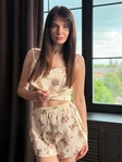 Комплект складається з шортів та майки Виготовлена з м’якого мусліну, що дозволяє шкірі дихати, не парить та не викликає подразнень.