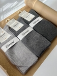 Затишні в’язані шкарпетки у стильній палітрі кольорів. Виготовлені з м’якої приємної на дотик пряжі, забезпечують тепло та комфорт у будь-яку пору року. Еластичні резиночки ніжно фіксують шкарпетки, не здавлюючи ногу. Ідеальний вибір для домашнього затишку чи як стильний акцент у повсякденних образах.